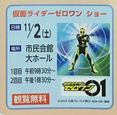 大阪府寝屋川市出身の奥野 壮さんが2019年の昨年『仮面ライダージオウ』の主演を務めた。その縁から昨年はトークショーと「仮面ライダージオウショー」が行われた。今年も奥野さんのスペシャルトークショーがあり、今年の作品『仮面ライダーゼロワン』の…