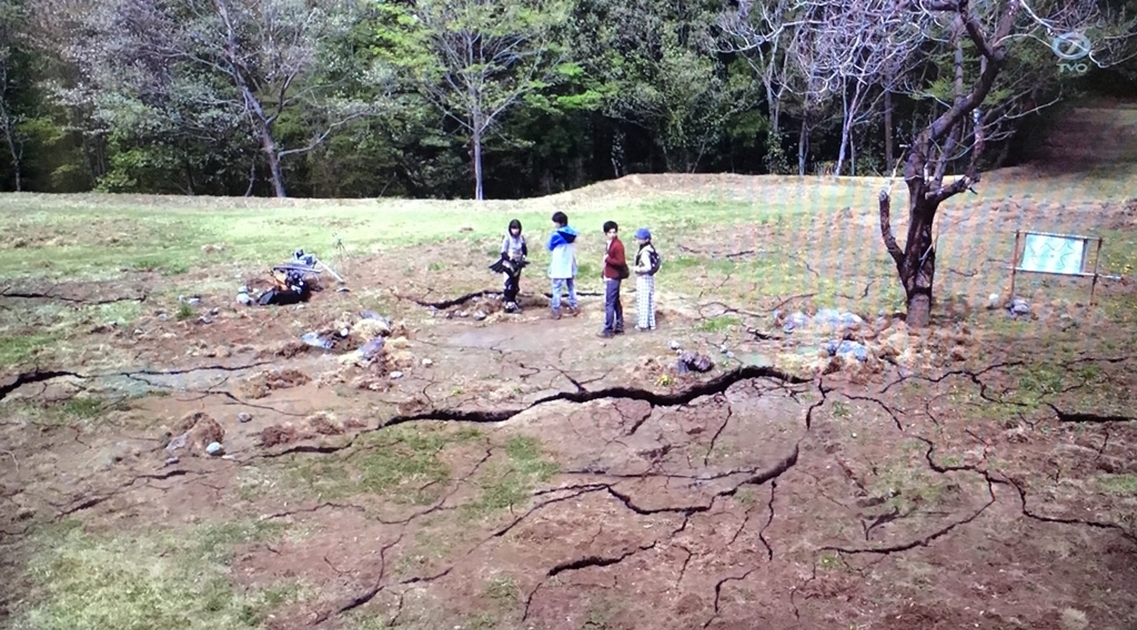 ウルトラマンと怪獣の戦いにより、地面に亀裂が出来ていて、そこから風が噴出している。